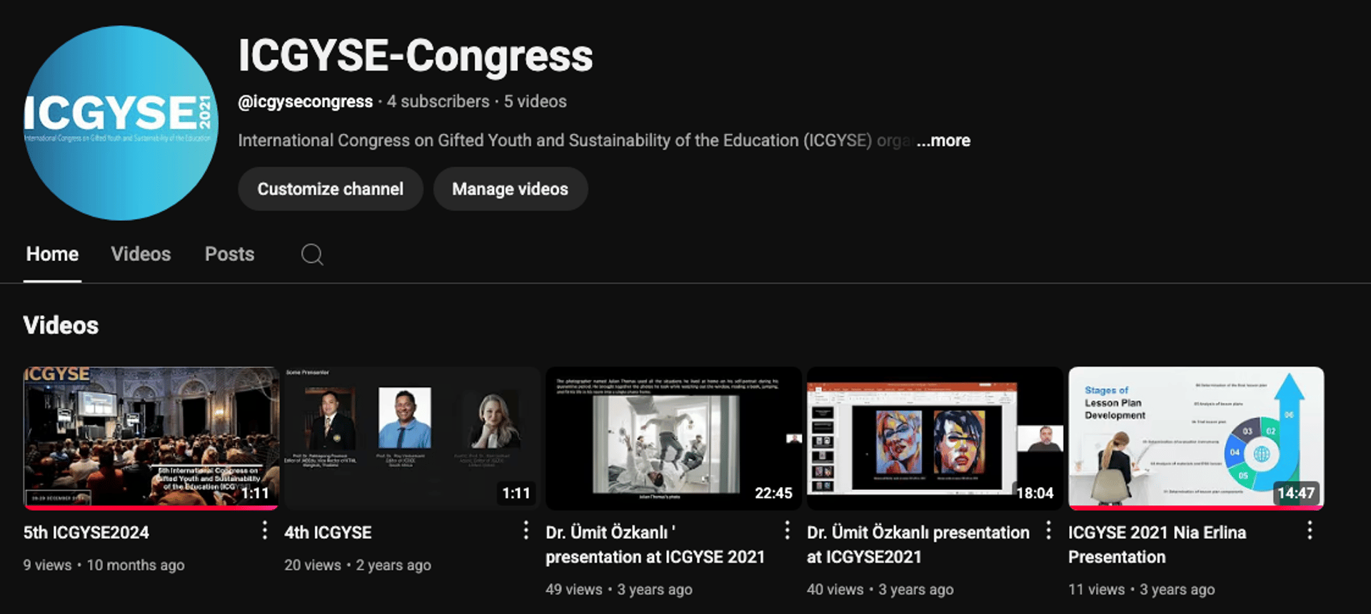 6th International Congress on Gifted Youth and Sustainability of the Education (ICGYSE) 13-14 December 2024 will be held in Online (Zoom) + Face to Face Istanbul, Turkiye. Congress Theme: Paradigm shift in education