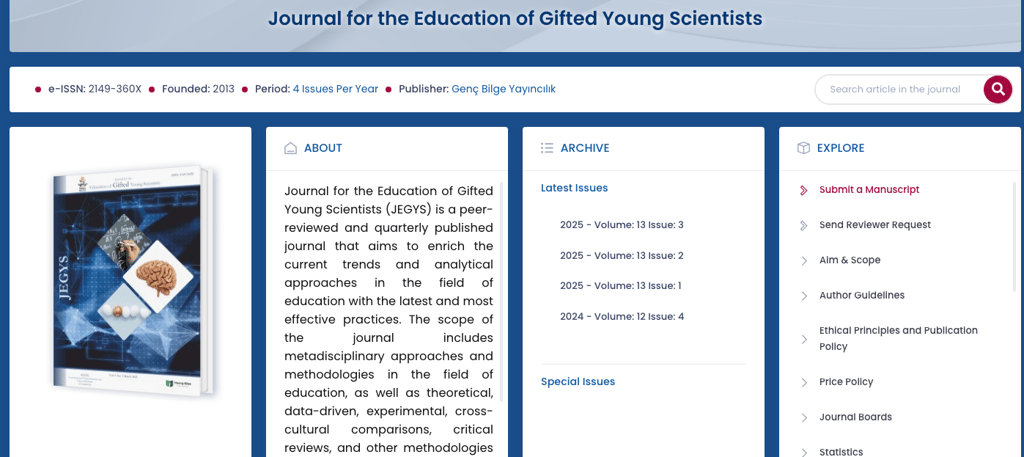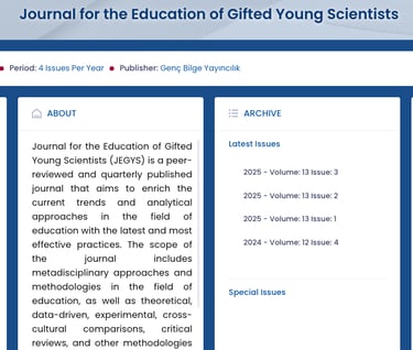 Participation certificates will be distributed to all participants on the last day of the congress. Participants are required to submit full-text manuscripts selected by the congress scientific committee to articles published in Genc Bilge Publishing journals supporting the ICGYSE. Peer review processes in these journals are independent of the ICGSYE. Therefore, selection of articles does not guarantee acceptance for publication in the journals. However, ICGYSE provides participants with the opportunity to publicize their research in relevant academic journals, to further develop their research through academic discussions held during the congress, and to enhance its quality and acceptance.